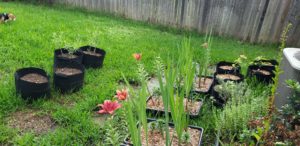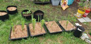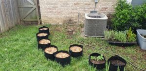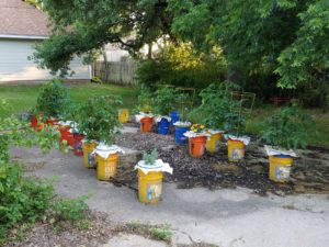 Here are a few more pictures of container gardening using buckets, grow bags, and concrete mixing trays.